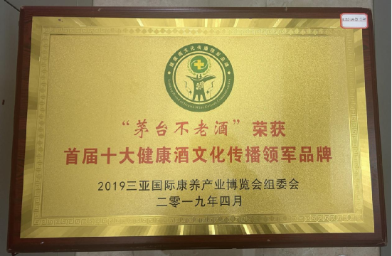 2019三亚国际康养产业博展会组委会授予“茅台不老酒”“首届十大健康酒文化传播领军品牌”