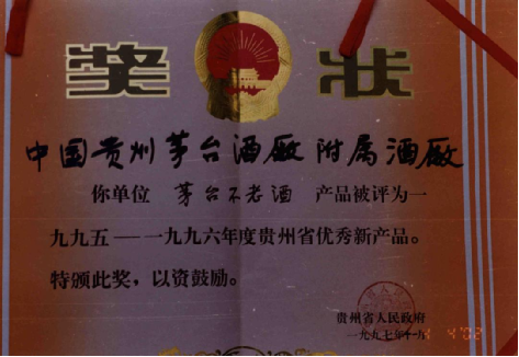 茅台不老酒获“1996年度省级优秀新产品”